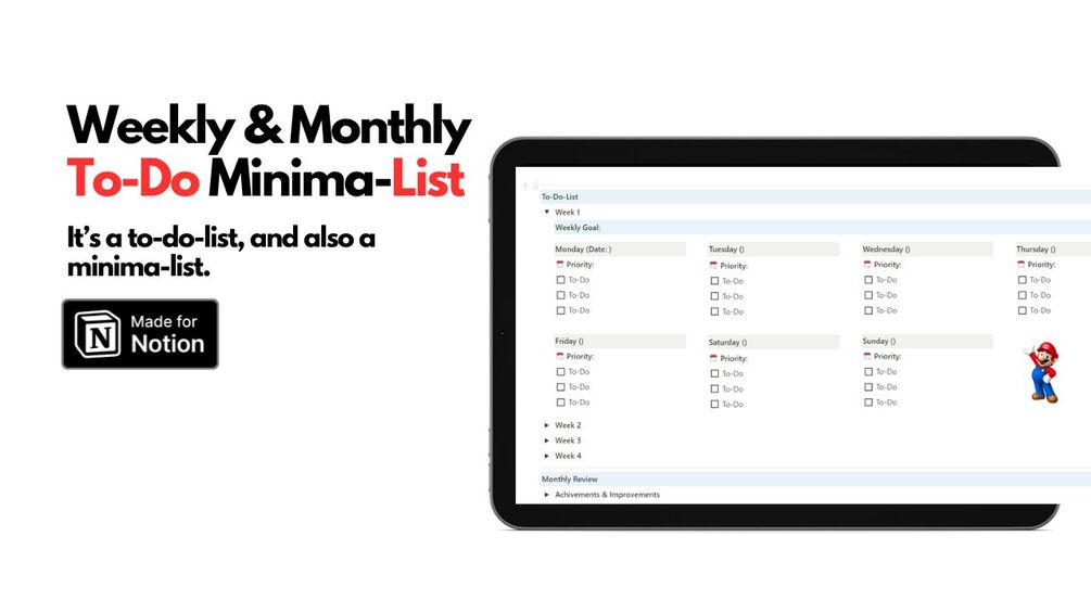 » Weekly: To-do-lists are organized on a weekly basis for you to review your weekly progress